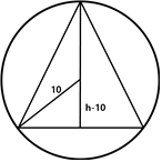 높이가 h인 이등변삼각형을 원에 놓을 시 밑변의 길이는 2\sqrt{10^2 - (h - 10)^2} = 2\sqrt{20h - h^2}이다.
