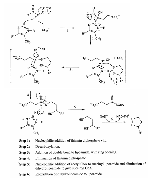 다음 중 TCA 회로에서 succinyl CoA에서 α-ketoglutarate로 전환되는 과정의 메커니즘에 포함되지 않는 반응은?