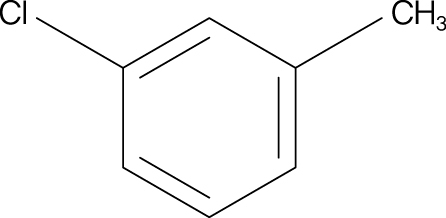 치환기 간의 상대 위치가 1,3-관계이므로 공식적인 IUPAC 명칭은 1-chloro-3-methylbenzene이다.