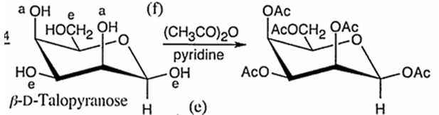 (CH_3CO)_2O/pyridine은 당의 모든 자유-OH를 아세틸화하여 격리 가능한 여러 O-아세테이트(예: tri/penta-acetate)를 만든다.