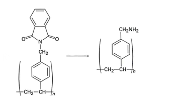 프탈이미드를 1차 아민으로 전환하는 대표적인 반응은 Gabriel 합성법입니다. 이 반응에서 Hydrazine(\text{N₂H₄})은 프탈이미드를 환원적으로 열어 1차 아민(\text{CH₂NH₂})을 생성합니다.