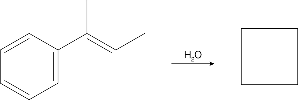 문제의 반응식은 알켄에 H_2O을 첨가한 것으로 벤질자리의 탄소양이온 중간체를 경유하여 1번 생성물이 생성된다.