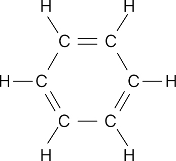 Benzene(\mathrm{C_6H_6})은 평면의 육각형 구조(regular planar hexagon)이며, 각 탄소 원자는 세 개의 시그마(\sigma) 결합을 형성한다. 탄소 1개가 3개의 \sigma 결합을 만들 때 \rightarrow 혼성은 sp^2