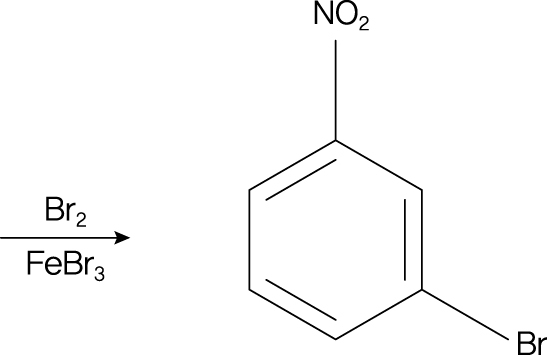 따라서 \displaystyle \text{Br}_2/\text{FeBr}_3 조건에서 브롬이 \displaystyle meta 위치에 도입된다.