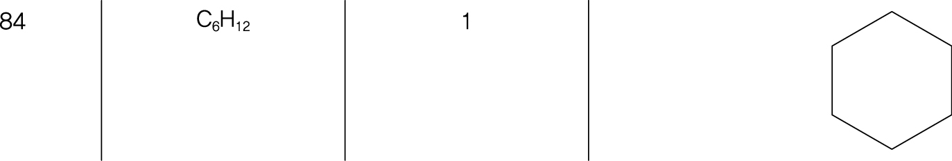 \displaystyle \text{M}^+ = 84 \text{인 탄화수소}