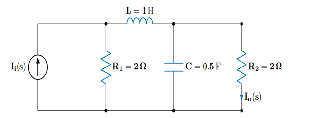 다음 회로에서 전류 전달 함수 H(s)=\dfrac{I_o(s)}{I_i(s)}를 구하면?