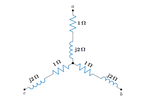 Y 결선된 임피던스를 \Delta 결선으로 등가 변환하면 그 관계는 다음과 같다. \displaystyle Z_\Delta = 3Z_Y 따라서 등가 임피던스 \displaystyle Z_{ab} = 3 + j6 이므로 답은 ②이다.