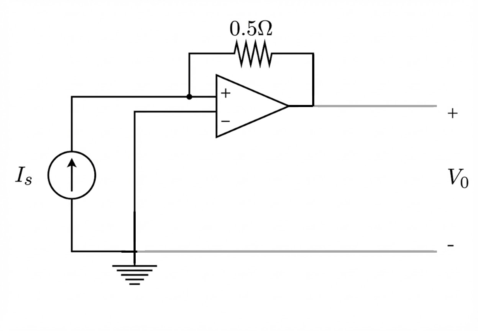 다음 회로는 전류-전압을 변환하는 트랜스컨덕턴스 회로이다. 회로의 \dfrac{v_0}{i_s}의 값을 구하시오.