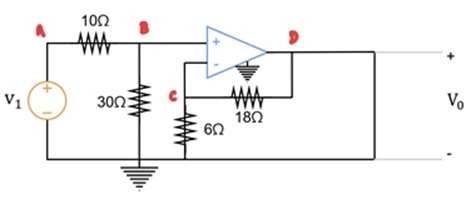\displaystyle V_D=V_C\times\frac{6+18}{6}=4V_C=3V_A=V_0
