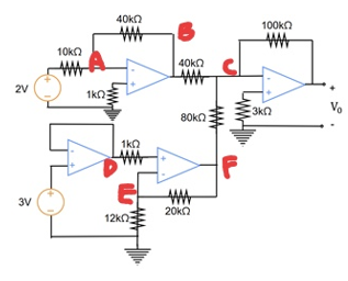 node C (KVL) \displaystyle \frac{V_C-V_B}{40k}+\frac{V_C-V_F}{80k}=\frac{V_0-V_C}{100k}