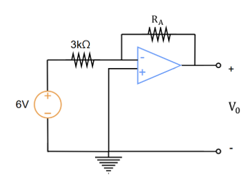 \displaystyle A=-\frac{R_A}{3k}=-20,\ R_A=60k\Omega