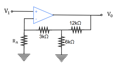 \displaystyle V_0=V_1\times\left(\frac{1}{R_A}+\left(1+\frac{3k}{R_A}\right)\frac{1}{4k}\right)\times12k