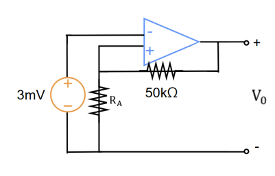 \displaystyle V_0=3m\times\frac{50k+R_A}{R_A},\ A=\frac{V_0}{3m}=101=\frac{50k+R_A}{R_A}\ \rightarrow\ R_A=0.5k\Omega