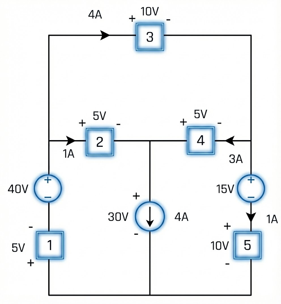 Tellegin’s theorem에 의해 계산하지 않아도 0이 됨을 알 수 있다.