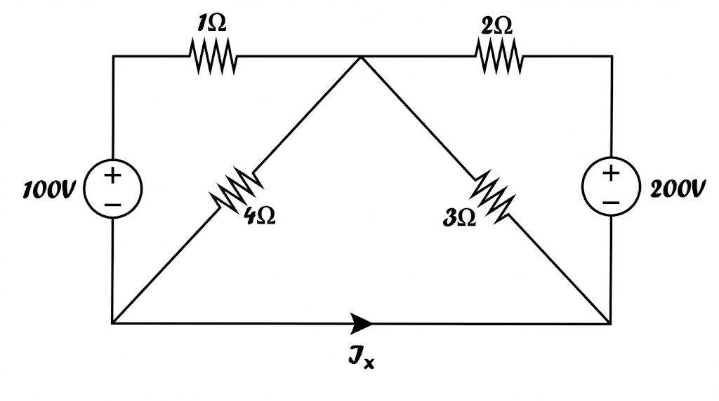 다음 회로에서 \text{I}_\text{x}의 값을 구하시오.