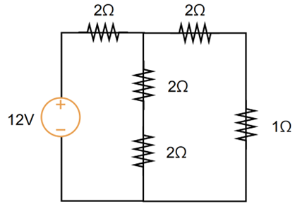 R_{\mathrm{Th}} = 2 + 2||(2 + 2) = \frac{10}{3}(\Omega),\quad V_{\mathrm{oc}} = 12 \times \frac{2}{3} = 8(\mathrm{V})