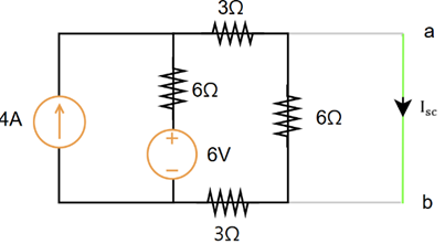 \displaystyle 6(I_{sc} - 4) + 6I_{sc} = 6,\quad I_{sc} = \dfrac{5}{2}(A)