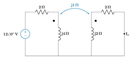 \begin{cases} \displaystyle (2 + j4)I_1 - j1I_2 = 12 \\ \displaystyle -j1I_1 + (2 + j2)I_2 = 0 \end{cases}
