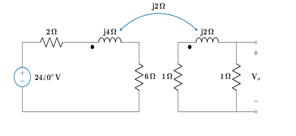 위 회로 방정식을 풀면 \displaystyle I_2 = \dfrac{4}{-2 + j1} 이고, V_o = 1 \times I_2이므로 답은 ②이다.