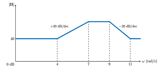 H(j\omega)=100\dfrac{(1+\dfrac{j\omega}{7})(1+\dfrac{j\omega}{9})}{(1+\dfrac{j\omega}{4})(1+\dfrac{j\omega}{11})}