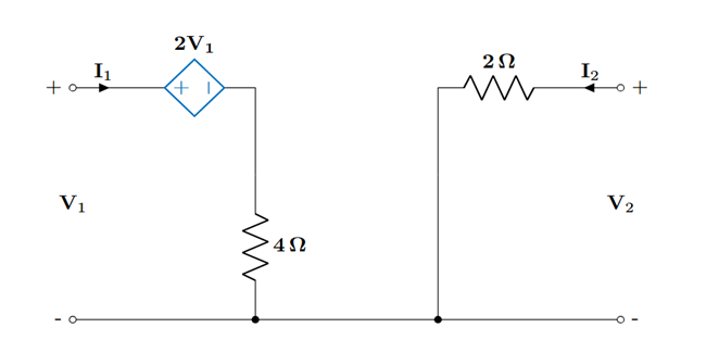 Y_{22} = \frac{I_2}{V_2}|_{V_1=0} 이다. V_1을 단락시키면 V_2 = 2I_2 가 되므로 Y_{22} = \frac{1}{2} 이다. 따라서 답은 ⑤이다.