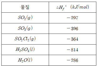 다음 표를 참고하여 HCl(g)의 표준 생성 엔탈피를 구하시오.