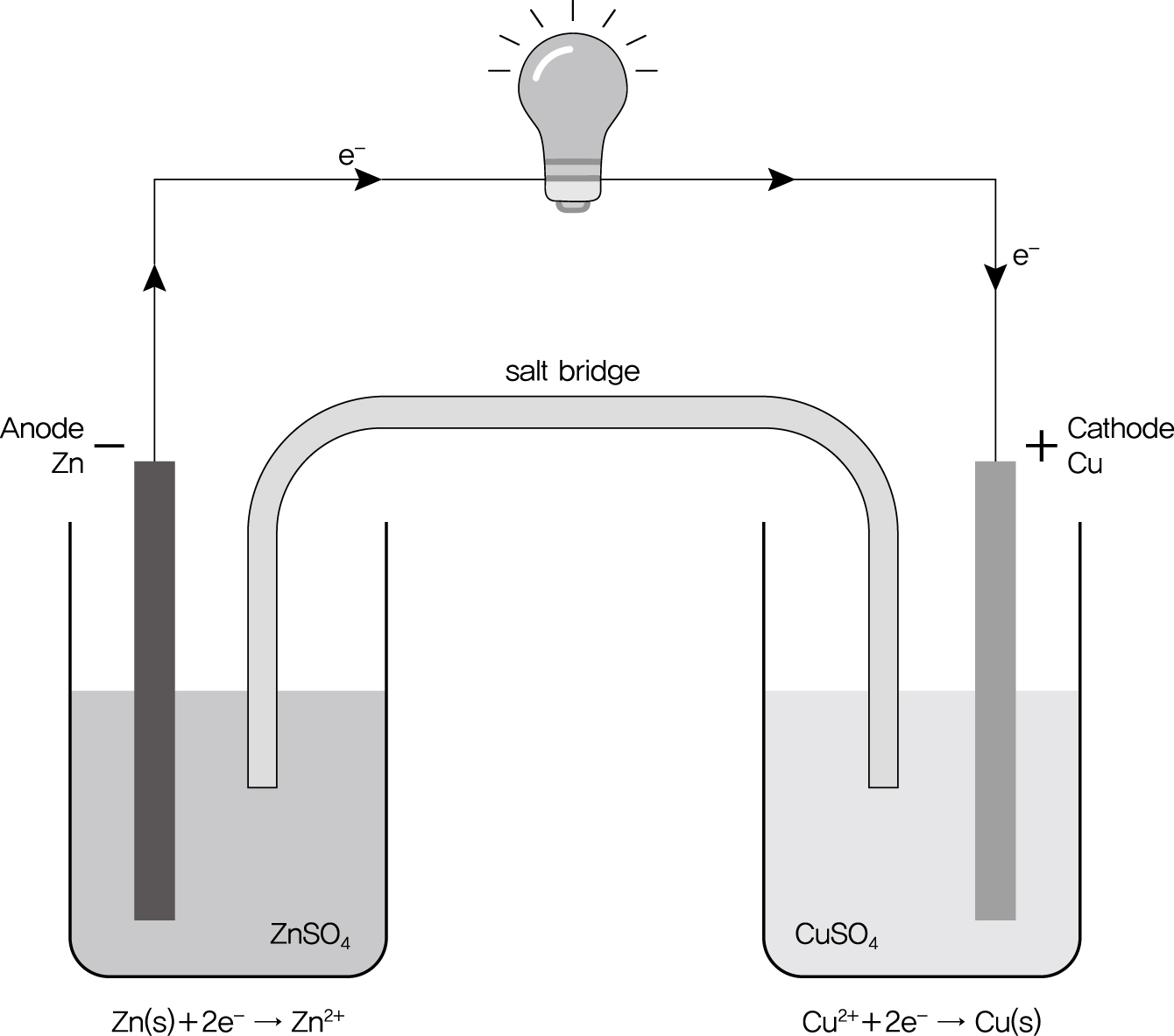 정의: 자발적인 산화-환원 반응을 이용하여 화학 에너지를 전기 에너지로 직접 변환하는 장치이다.
